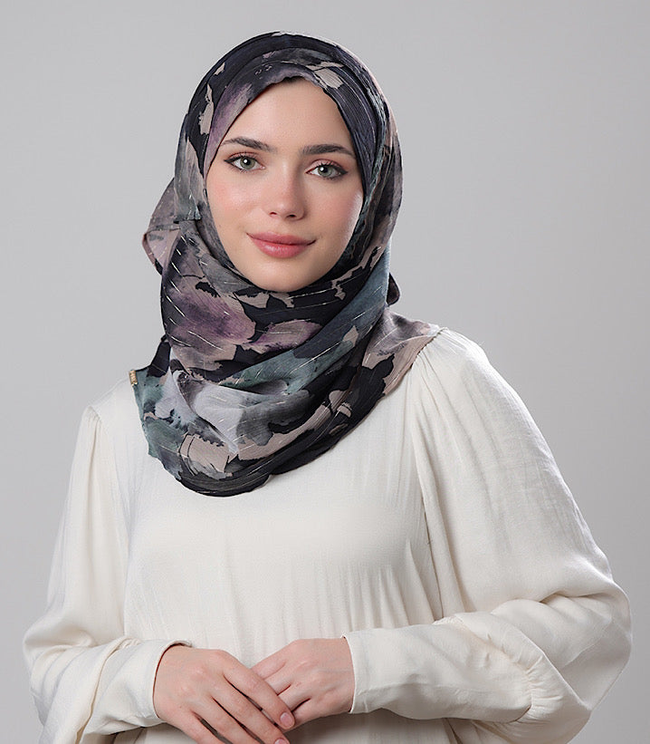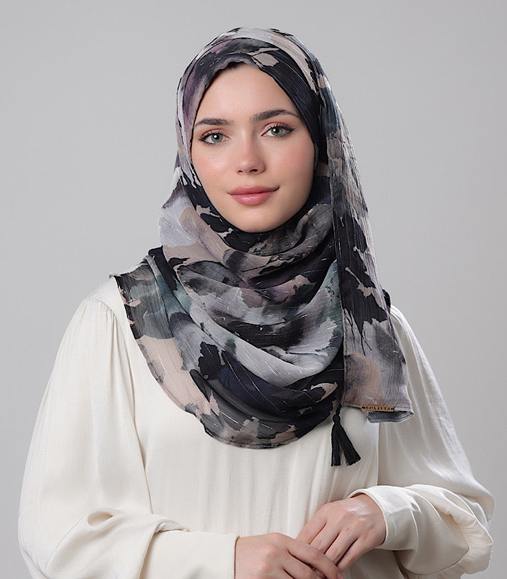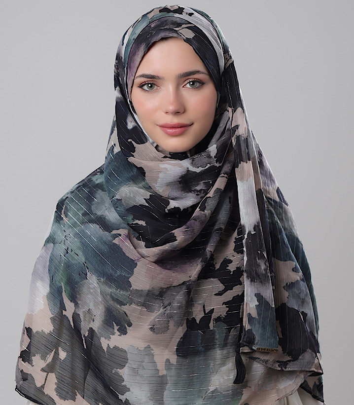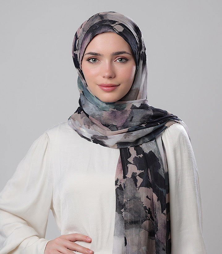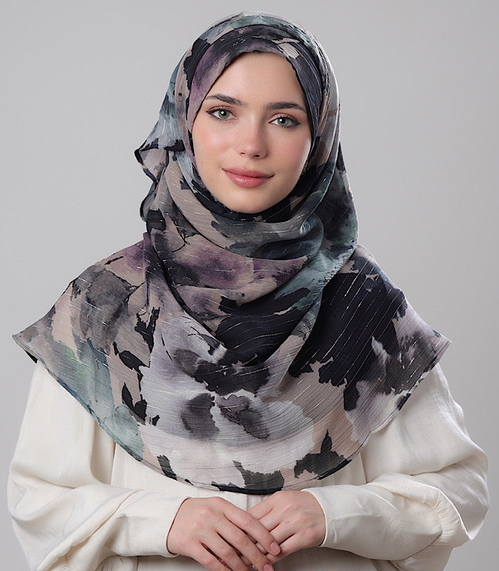 Material: Printed Crinkled Chiffon with Lurex