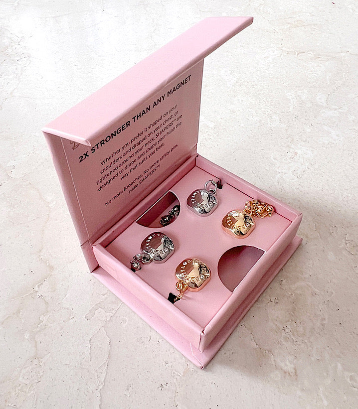 2 Pairs of Squircle Magnetic Pins with Crystal Rhinestone and Connected With A Chain